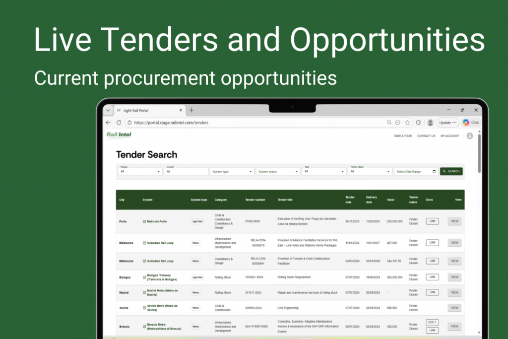 Take a Tour with Laura as she introduces our global light rail portal, designed to provide real-time data on over 900 light rail and metro systems, helping operators, suppliers, planners, and authorities make informed decisions
